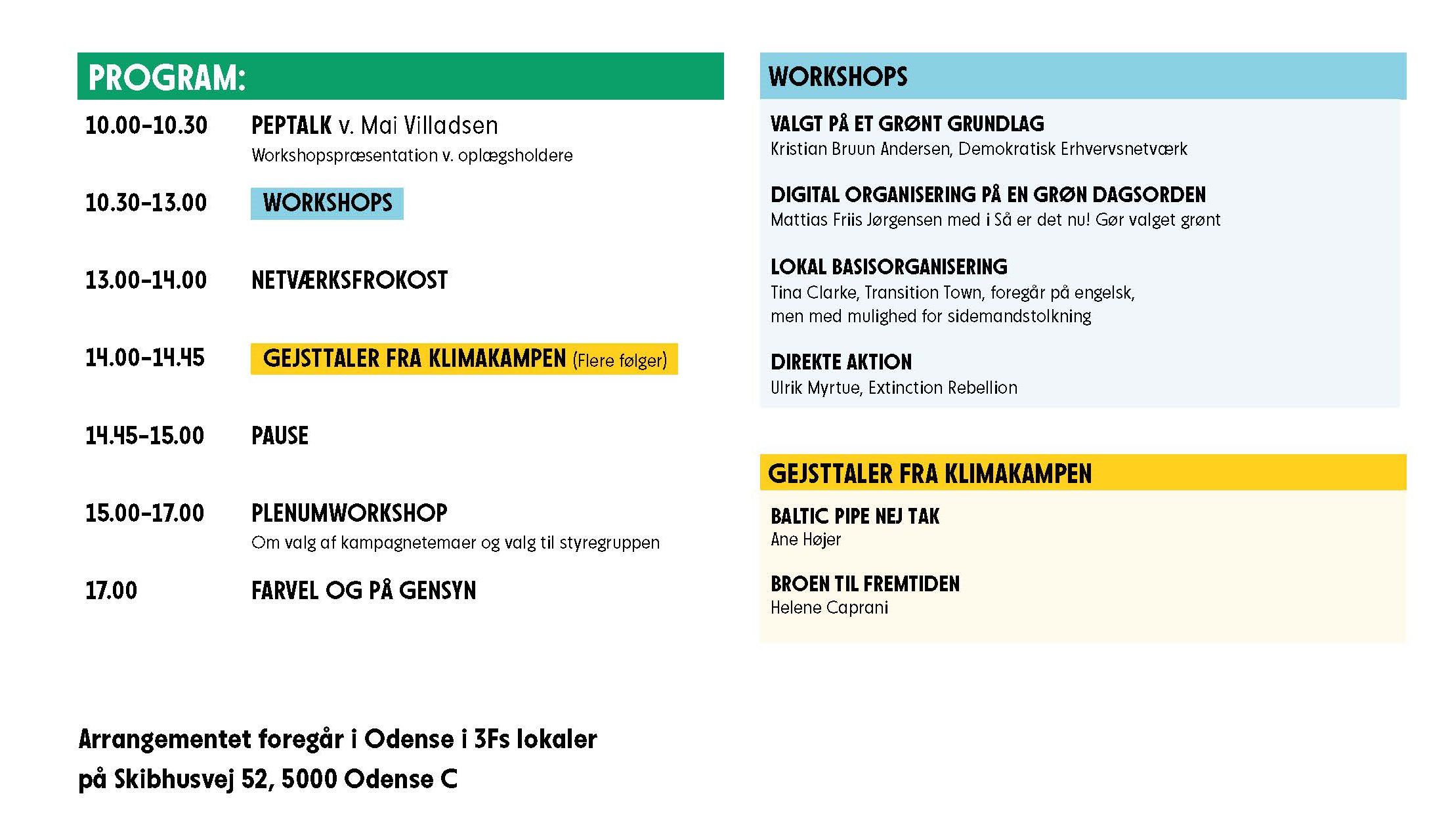 Arrangementet foregår i Odense i 3Fs lokaler på Skibhusvej 52, 5000 Odense C.